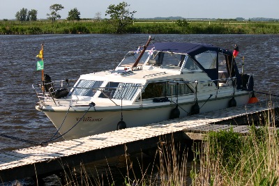 Unsere Williams wurde komplett renoviert.    Es handelt sich bei diesem Boot um eine Polaris 770 L mit einer Länge von 8 Metern und einer Breite von 2,70 Meter. Durchfahrthöhe  2,35 Meter. Dieses hat bei unseren Touren viele Vorteile.